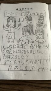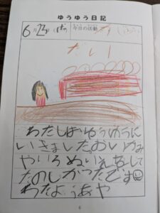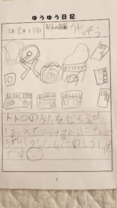 「ゆうゆうノート」に絵にっきのようなページがあります。そこに楽しかったことや、うれしかったことを、絵や文にしてみてください!