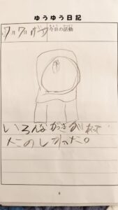 ゆうゆうプラザに参加している子どもたちは、講座のあとに「ゆうゆうノート」に感想や絵を描いてくれます。このページでは、その中からいくつかを写真でご紹介!「こんなことが楽しかったんだな」「こんなふうに感じてくれたんだな」と、スタッフもいつもほっこりしています。普段は見られない子どもたちの生の声、ぜひのぞいてみてくださいね。