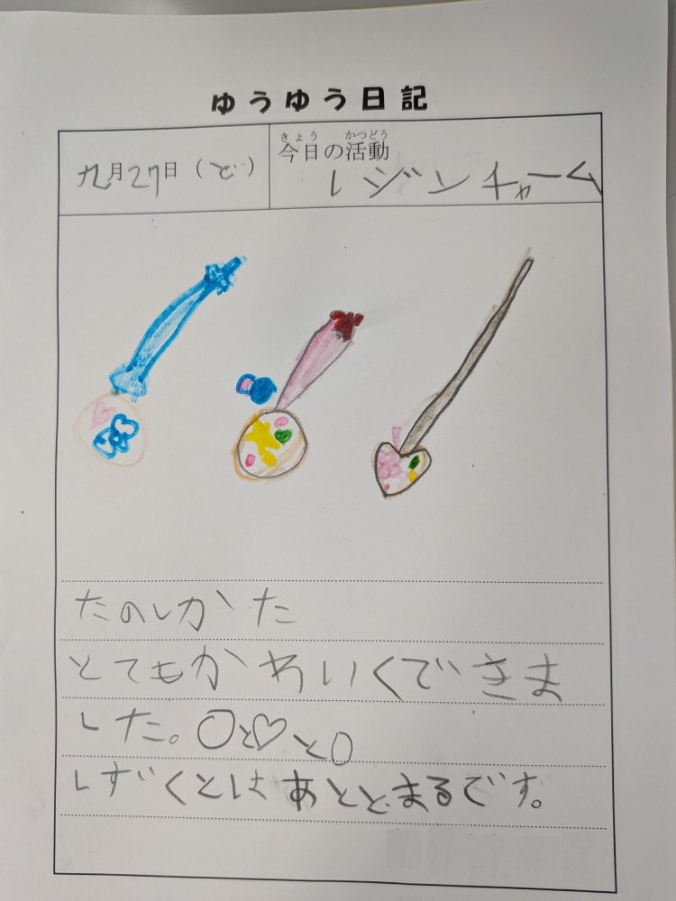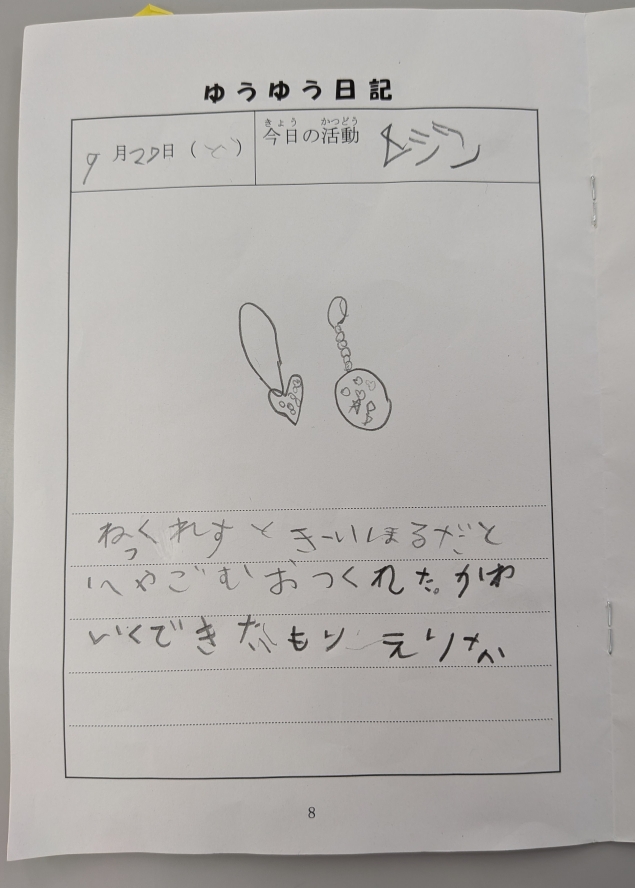 ゆうゆうプラザに参加している子どもたちは、講座のあとに「ゆうゆうノート」に感想や絵を描いてくれます。このページでは、その中からいくつかを写真でご紹介!「こんなことが楽しかったんだな」「こんなふうに感じてくれたんだな」と、スタッフもいつもほっこりしています。普段は見られない子どもたちの生の声、ぜひのぞいてみてくださいね。