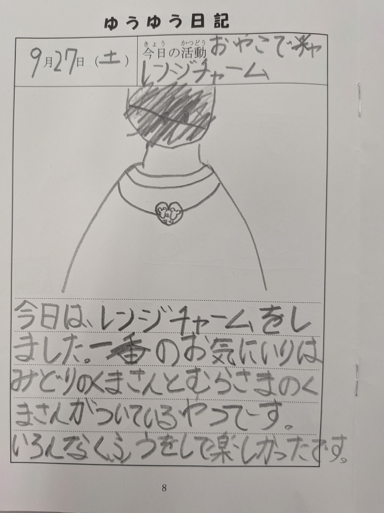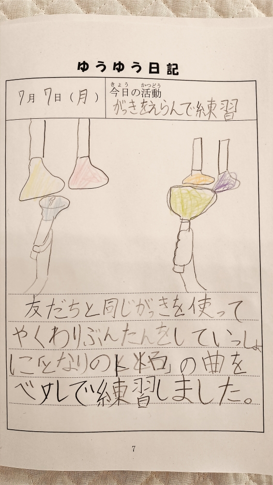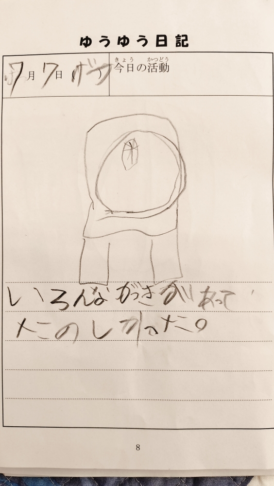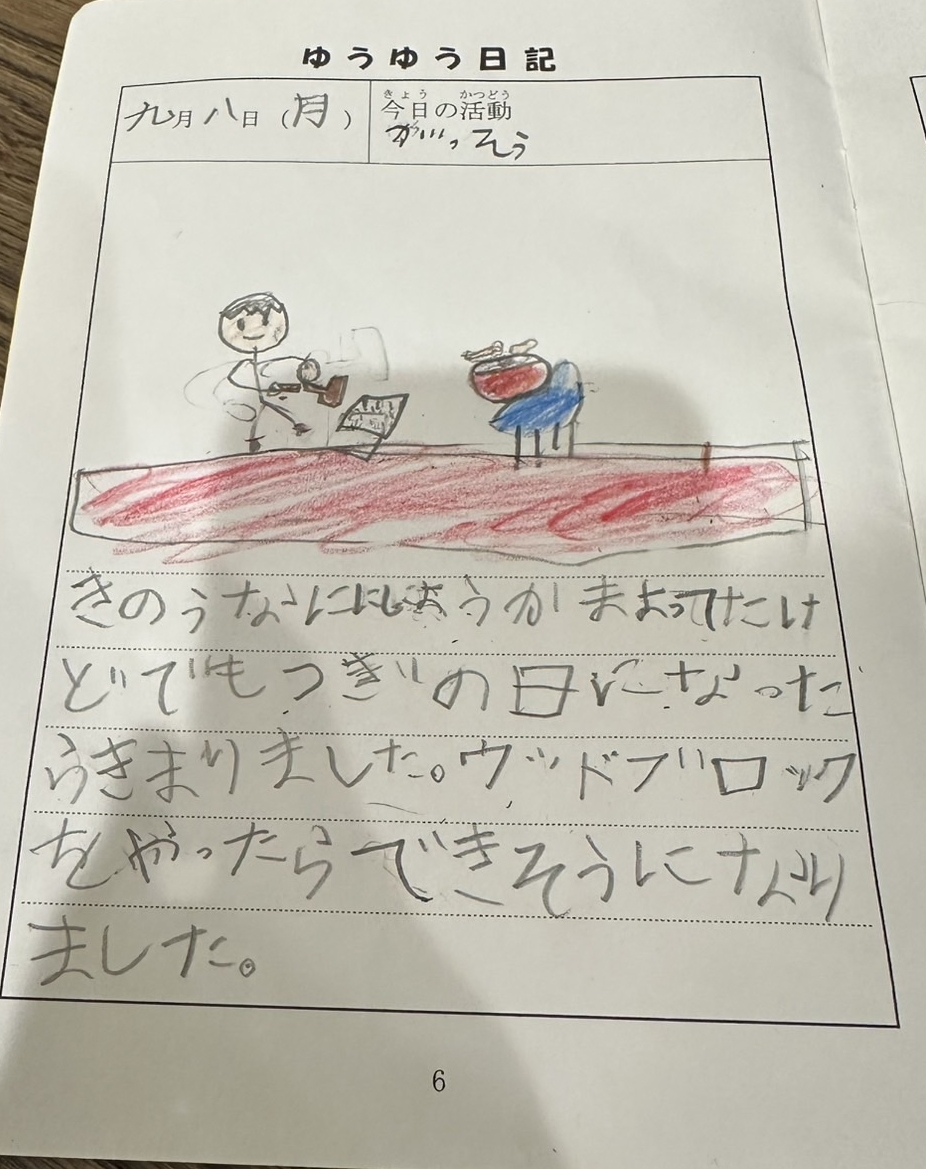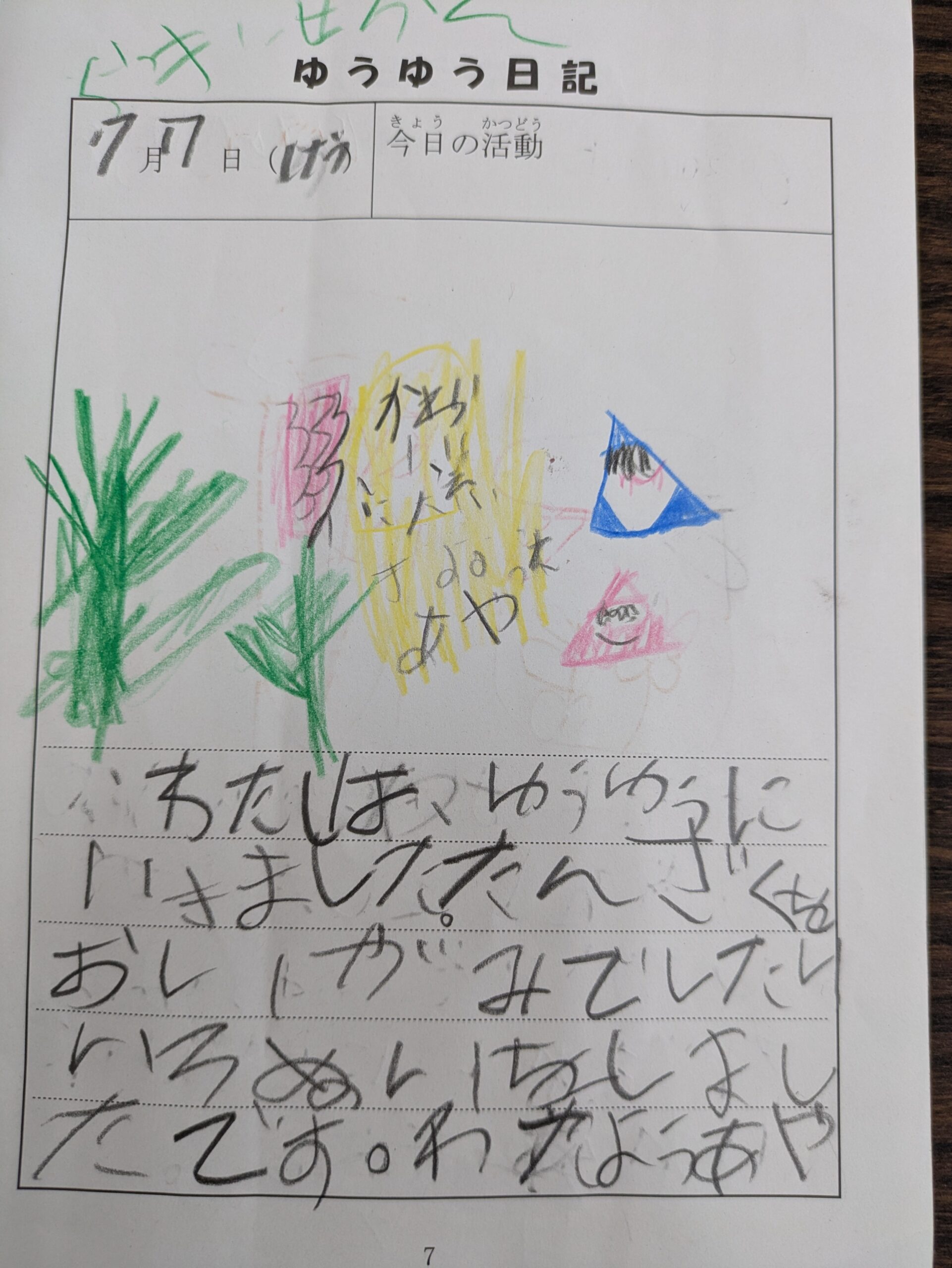 「ゆうゆうノート」に絵にっきのようなページがあります。そこに楽しかったことや、うれしかったことを、絵や文にしてみてください!
